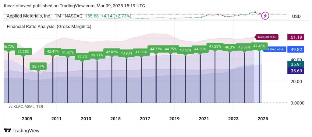 47.46% (AMAT) vs. KLAC (61.19%), ASML (49.82%), Teradyne (54.83%)