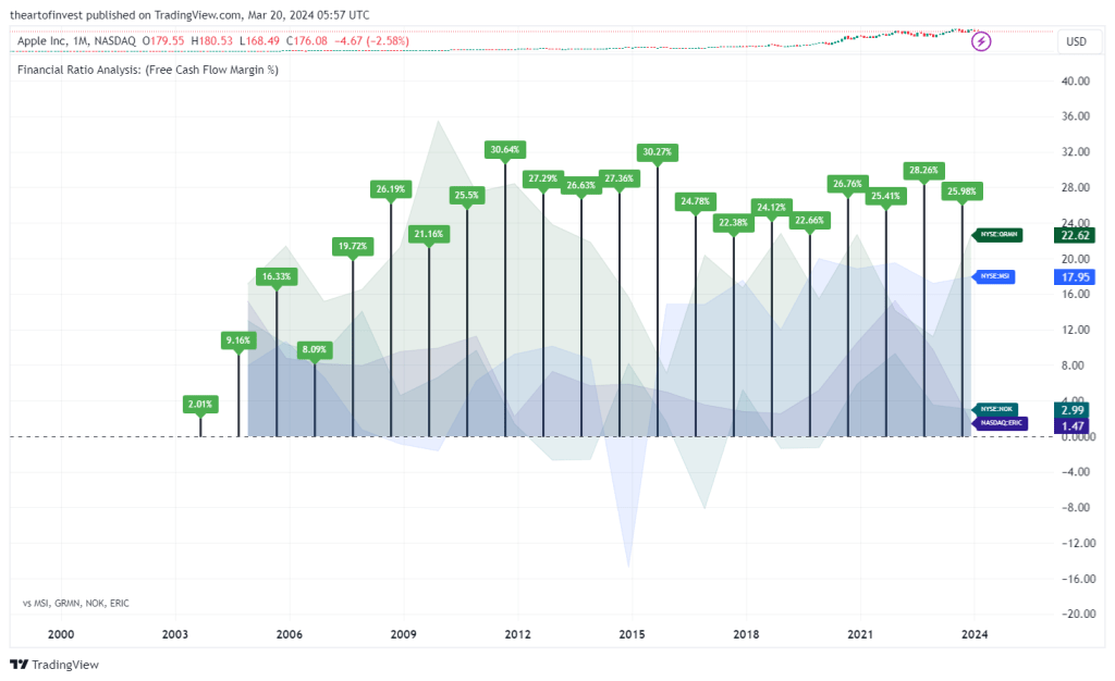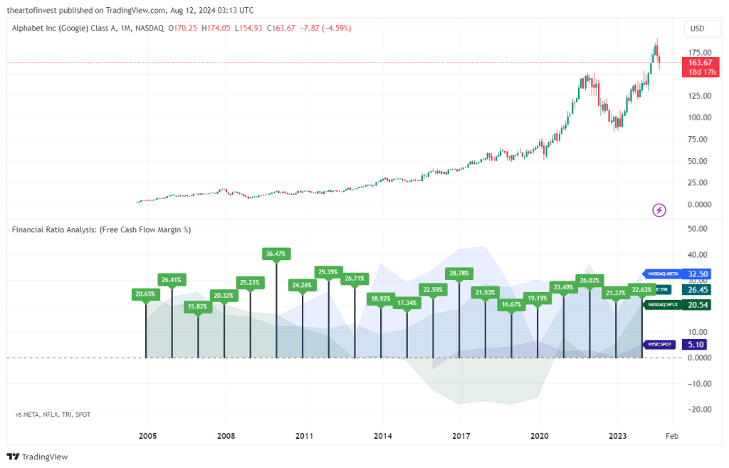 Free Cash Flow Margin is a profitability ratio that compares a company’s free cash flow to its revenue to understand the proportion of revenue that becomes free cash flow. The higher the percentage, the more cash is available from sales. A company that shows an increasing cash flow margin from year to year is certainly getting stronger with time. This is a good indicator of its probability for long-term success.